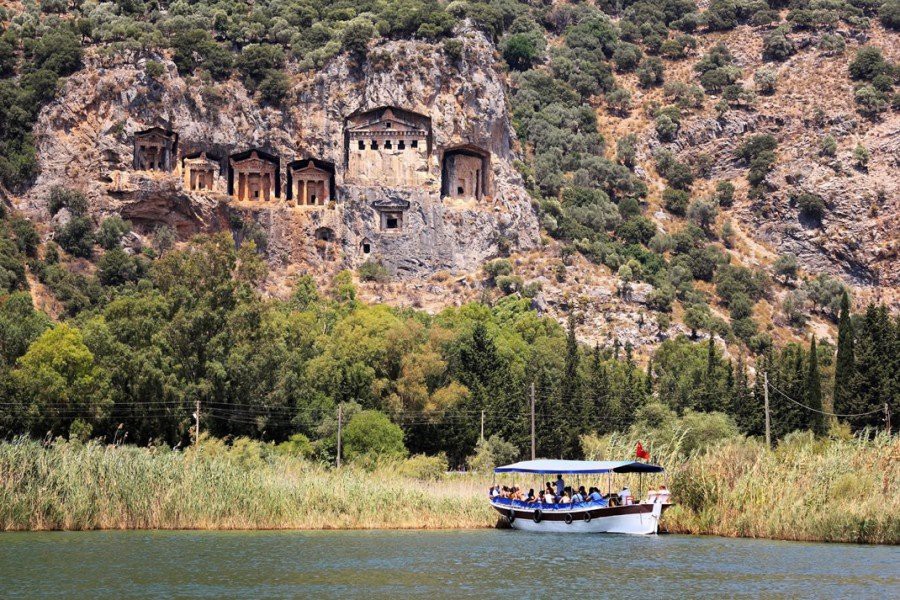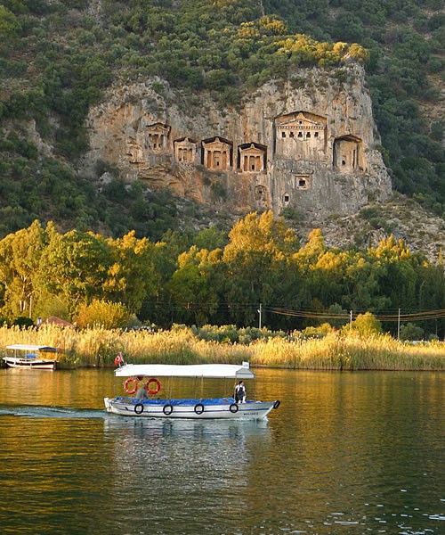 The tombs of Likya kings in Dalyan are important historical monuments that have survived for thousands of years. The massive rocks were carved with awe-inspiring skill, the tombs are cut into the steep mountain side, which in some places is at an 80-degree angle to the river. According to archaeologists, these rock tombs are the evidence of the wealth and power of the ancient city of Caunos dating back over 3000 years.